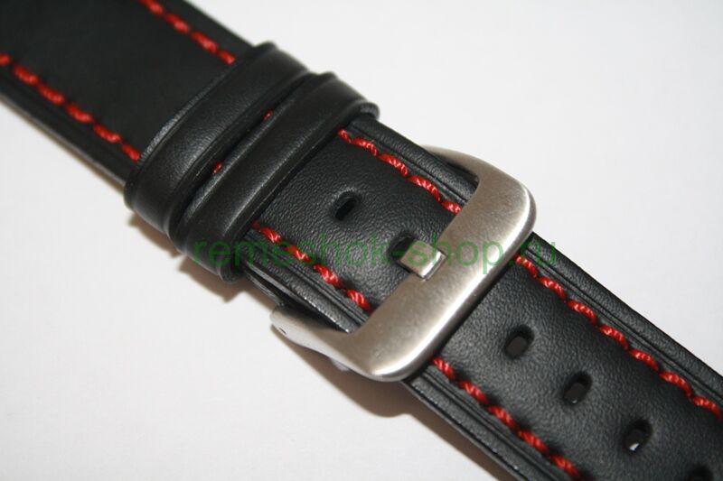 Ширина: 22мм, застежка 20 мм. Длина: L (удлинённый) Цвет: Черный матовый. С красной строчкой. Клепки. Цвет застёжки: Белая. Кожа телёнка.